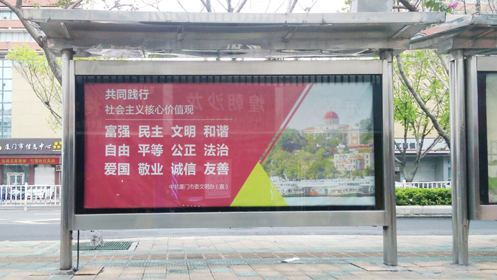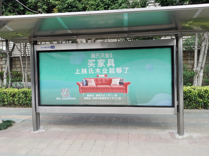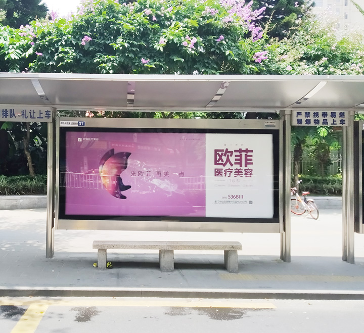 一般情況下,候車亭廣告使用單一的顏色作背景,文字采用與背景顏色反差較大的色彩,這樣既能襯托主體,又能令遠處的人可以清楚地看到。