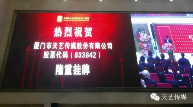 廈門市天藝傳媒股份有限公司于2015年11月13日在北京股轉(zhuǎn)公司舉行新三板掛牌敲鐘儀式。