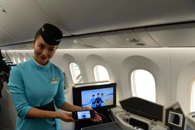 這架B787-9型飛機(jī)在客艙內(nèi)可實(shí)現(xiàn)空地互聯(lián),旅客在飛機(jī)進(jìn)入平飛狀態(tài)后,可利用電腦、iPad等設(shè)備連接客艙內(nèi)Wi-Fi信號(hào),體驗(yàn)收發(fā)郵件、購(gòu)物、微信等網(wǎng)絡(luò)服務(wù)。