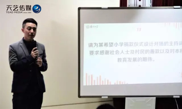 “首先,自我介紹簡短較好,幽默的話一兩句足夠,最好迅速進(jìn)入正題;還要注意不給自己“挖坑”。第二,儀態(tài)很重要,可利用環(huán)境緩解緊張,做出自然的手勢,給人放松之感。第三,選擇可駕馭的才藝展示,注意情緒轉(zhuǎn)換,與觀眾眼神交流。從觀眾角度出發(fā),調(diào)動觀眾參與度,與觀眾多互動。最后,要注意塑造鮮明豐滿的個人形象,個性化的主持風(fēng)范可以給評委留下深刻印象。”——熊慧老師